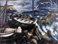 | Der Hafen von Vitt auf Rügen 85 x 101 cm Mischtechnik auf Leinwand (Tempera und Öllasur) bez. u. m.: R. Paris 62 Privatbesitz |