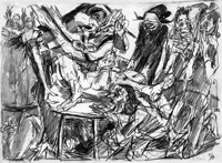 Der runde Tisch Lithographie 60 x 47 cm bez. u.r.: Ronald Paris 1990 im Besitz des Künstlers Werkfoto: Wolfgang Lücke |