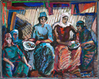 Dattelverkäuferinnen, Syrien 50 x 70 cm Gouache im Besitz des Künstlers Werkfoto: Wolfgang Lücke |
