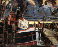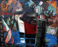 Flensburger Hafen 75 x 90 cm Öl auf Hartfaser bez. u. r.: R. Paris 99 im Besitz des Künstlers |