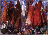 Zeesenboote in Bodstedt 75 x 103 cm Gouache im Besitz des Künstlers |