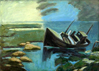 | Gestrandeter Kutter in Nordirland 50 x 69 cm Öl auf Hartfaser bez. u.r.: RParis06 im Besitz des Künstlers Werkfoto: H. Büchner |