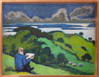 zeichnend auf Gross Zicker, Holztablett 34 x 44 cm Öl auf Holz Privatbesitz Werkfoto: Wolfgang Lücke |