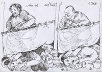 Entwürfe zur Plakataktion "Reich scheisst auf arm" III 30 x 21 cm Bleistift im Besitz des Künstlers Werkfoto: Wolfgang Lücke |