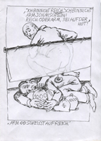 | Entwürfe zur Plakataktion "Reich scheisst auf arm" IV 30 x 21 cm Bleistift im Besitz des Künstlers Werkfoto: Wolfgang Lücke |